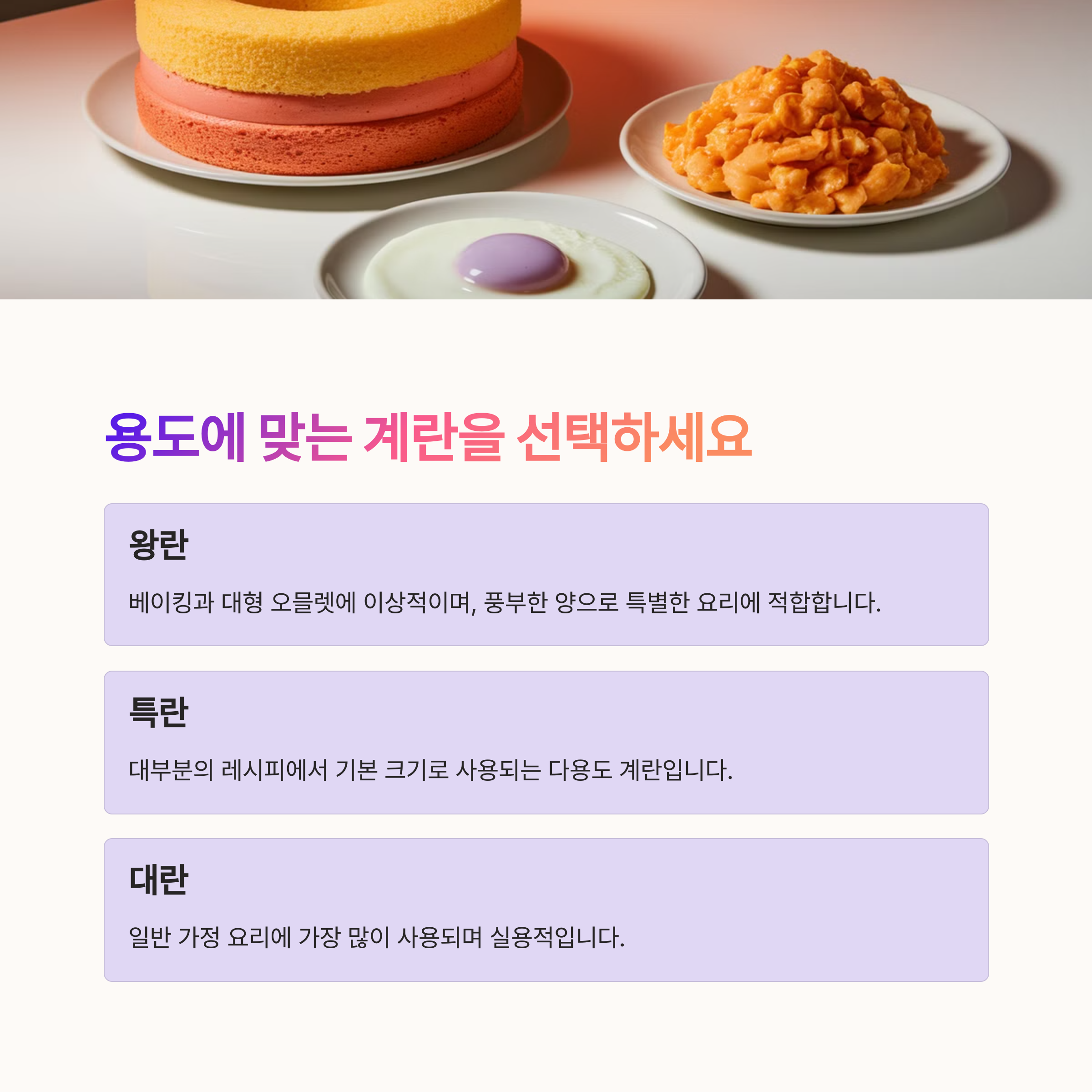 계란 크기마다 특징이 있고, 어떤 요리에 쓰면 좋은지도 달라요. 이제 각 크기별로 자세히 알아볼게요!