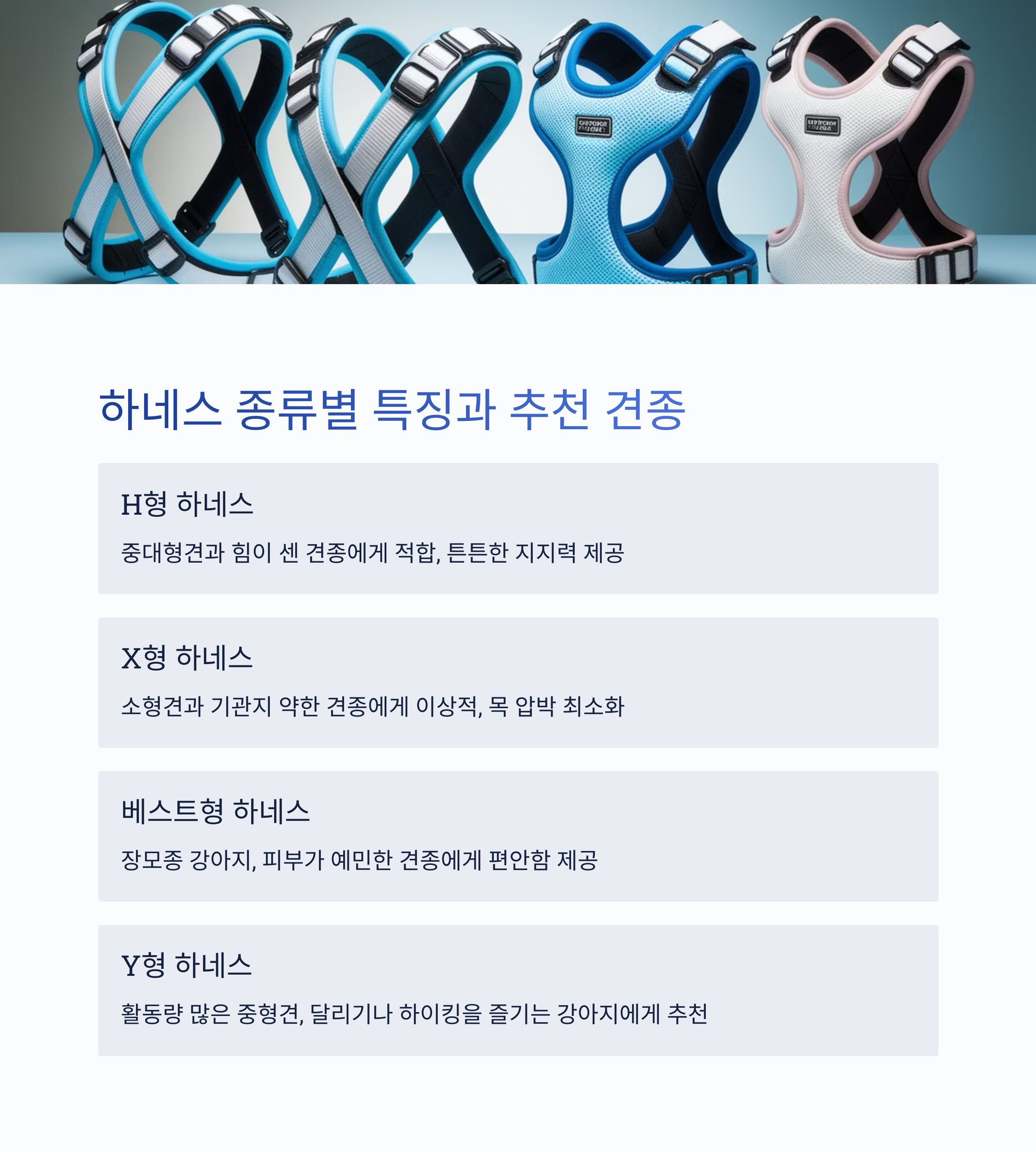 - 하네스 종류별 특징과 추천 견종