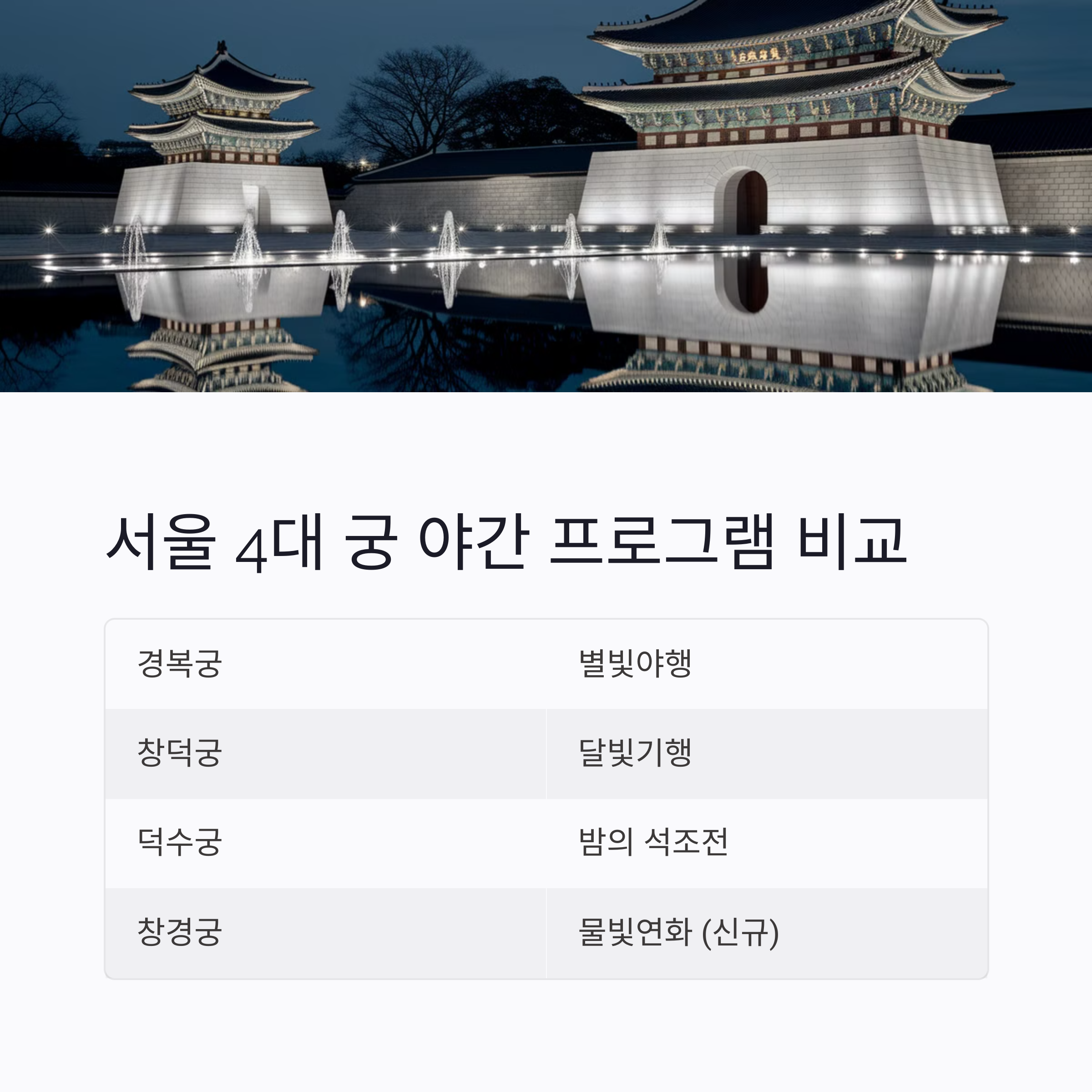 서울 4대 궁 야간 프로그램 비교