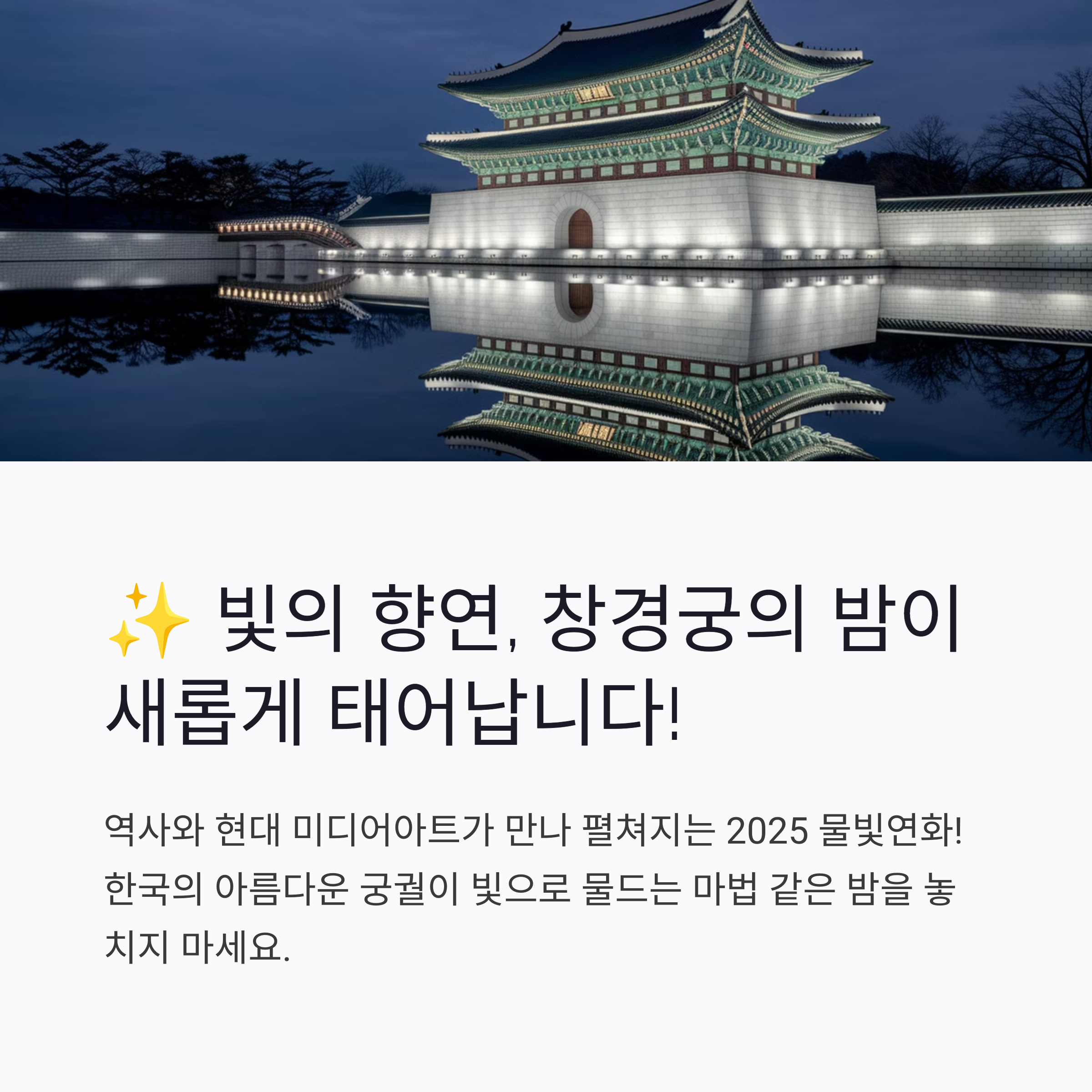 #창경궁 #물빛연화 #야간개장 #서울야경 #미디어아트 #춘당지 #한국문화유산 #야간투어 #서울여행 #2025트렌드