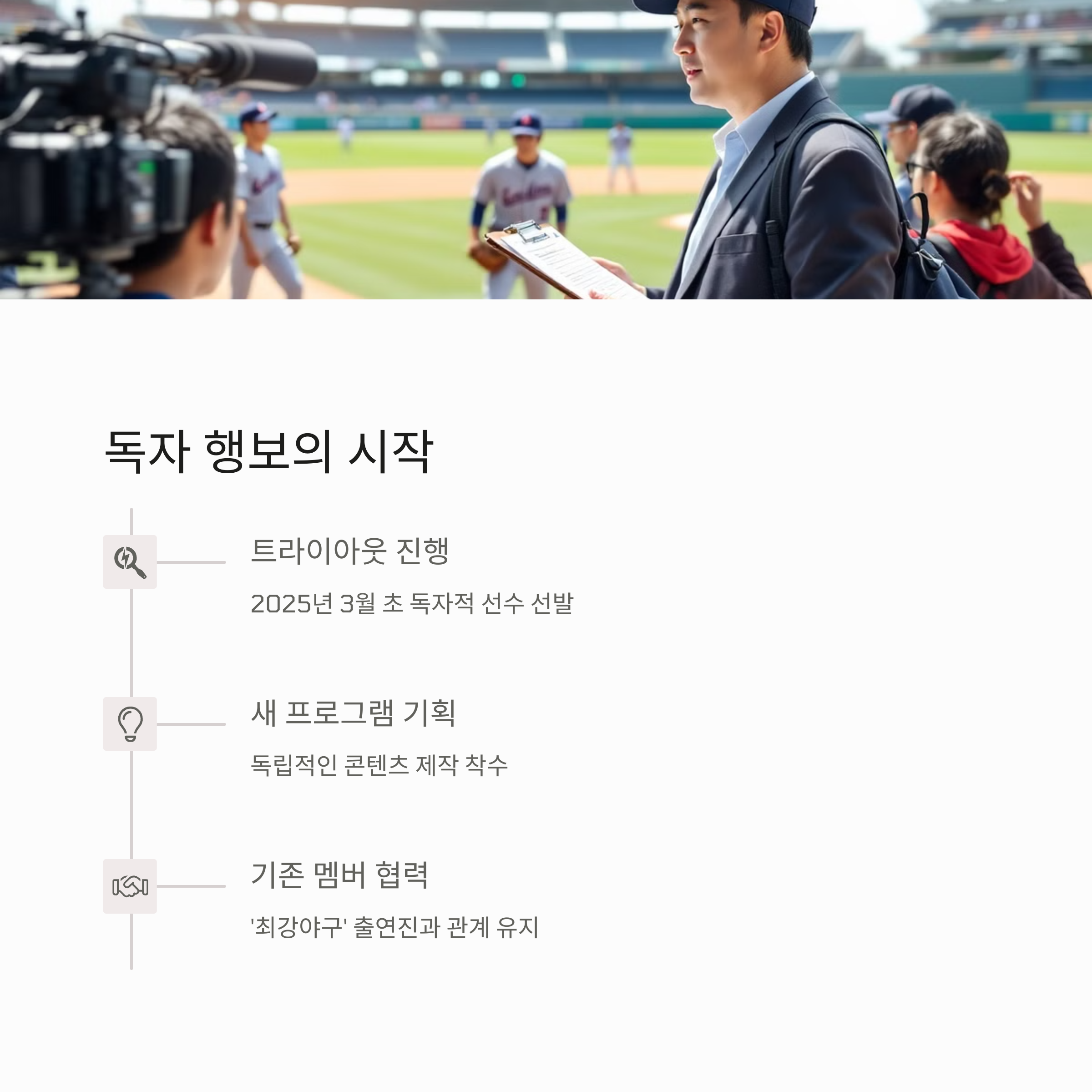 특히 주목할 점은 JTBC와 IP(지식재산권) 분쟁 중이라 '최강야구'라는 타이틀을 빼고 촬영을 진행했다는 거예요. 이번 촬영에는 기존 '최강야구' 출연진들과 트라이아웃을 통해 새롭게 합류한 멤버들이 모두 참석했다고 합니다.