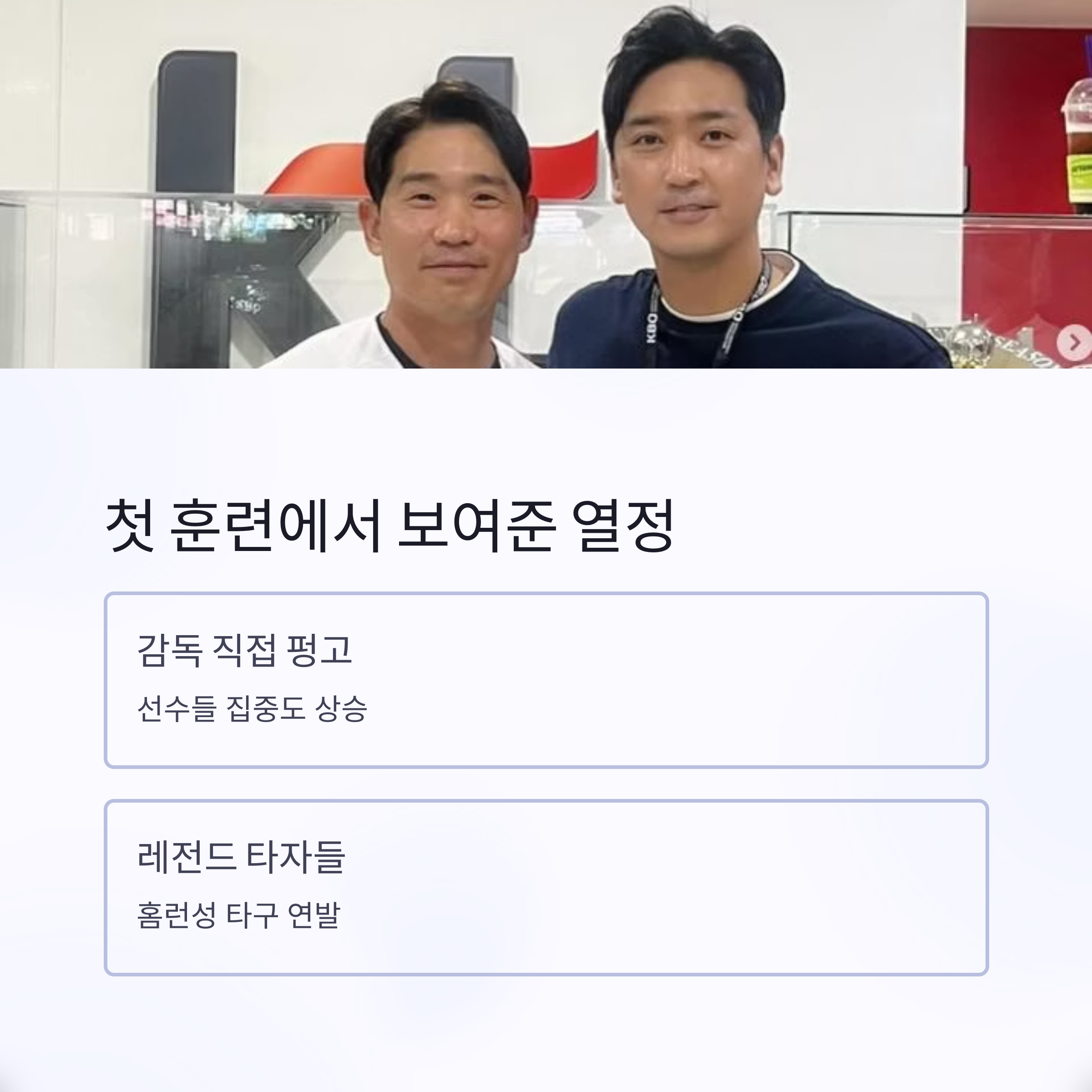 첫 팀 미팅에서 이종범 감독은 “감독이기 전에 선배로서 헌신하겠다”는 말로 시작했습니다. 선수들은 그의 등장만으로도 사기가 충만해졌다고 해요. 특히 직접 펑고를 쳐주며 선수 개개인에게 피드백을 전하는 모습은 진심이 느껴졌다고 합니다.