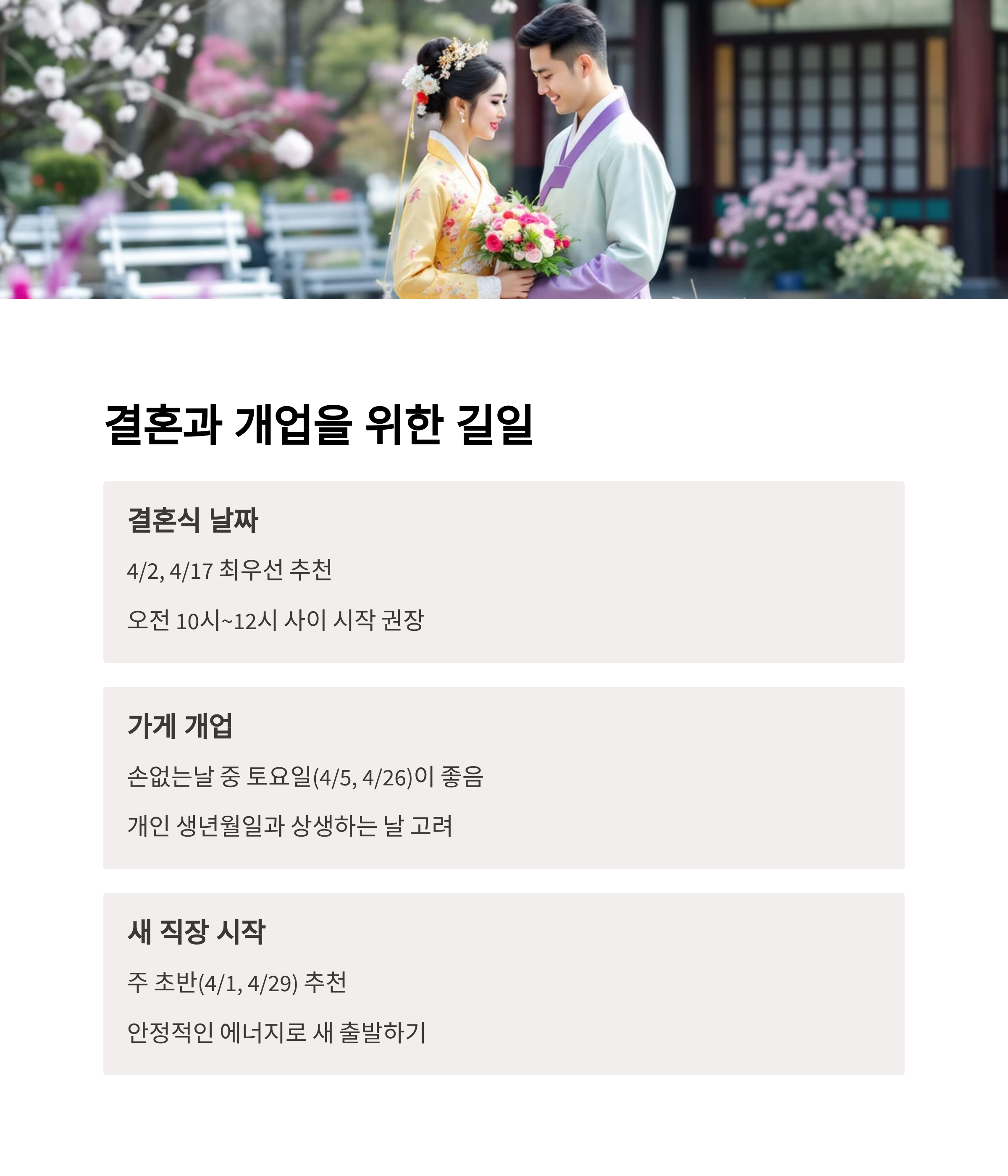 특히 주목할 만한 날: 4월 17일은 손없는날이면서 황도길일이 겹치는 2025년 4월의 최고 길일로 꼽힙니다!