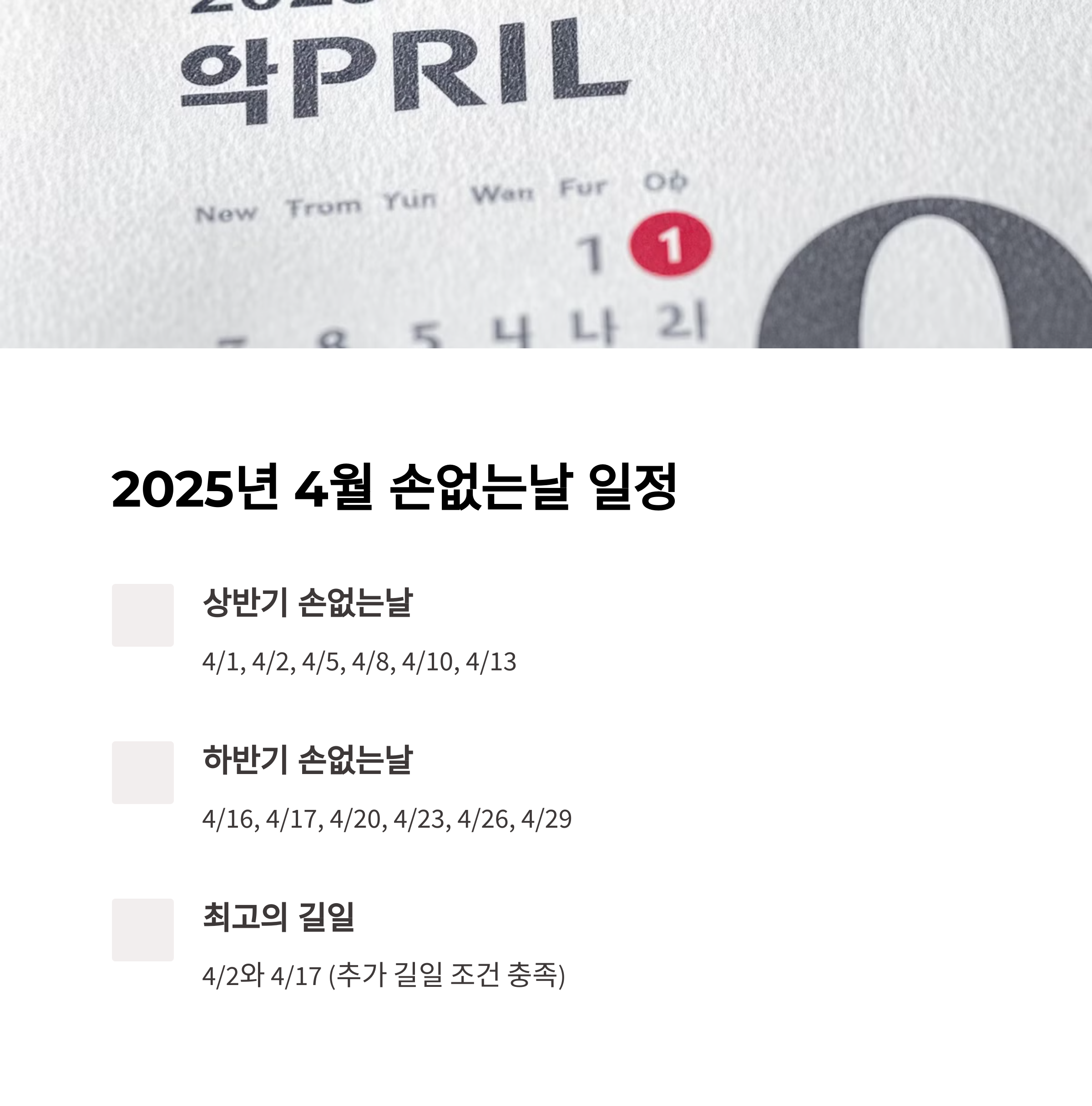 2025년 4월의 손없는날을 한눈에 확인해 보세요!