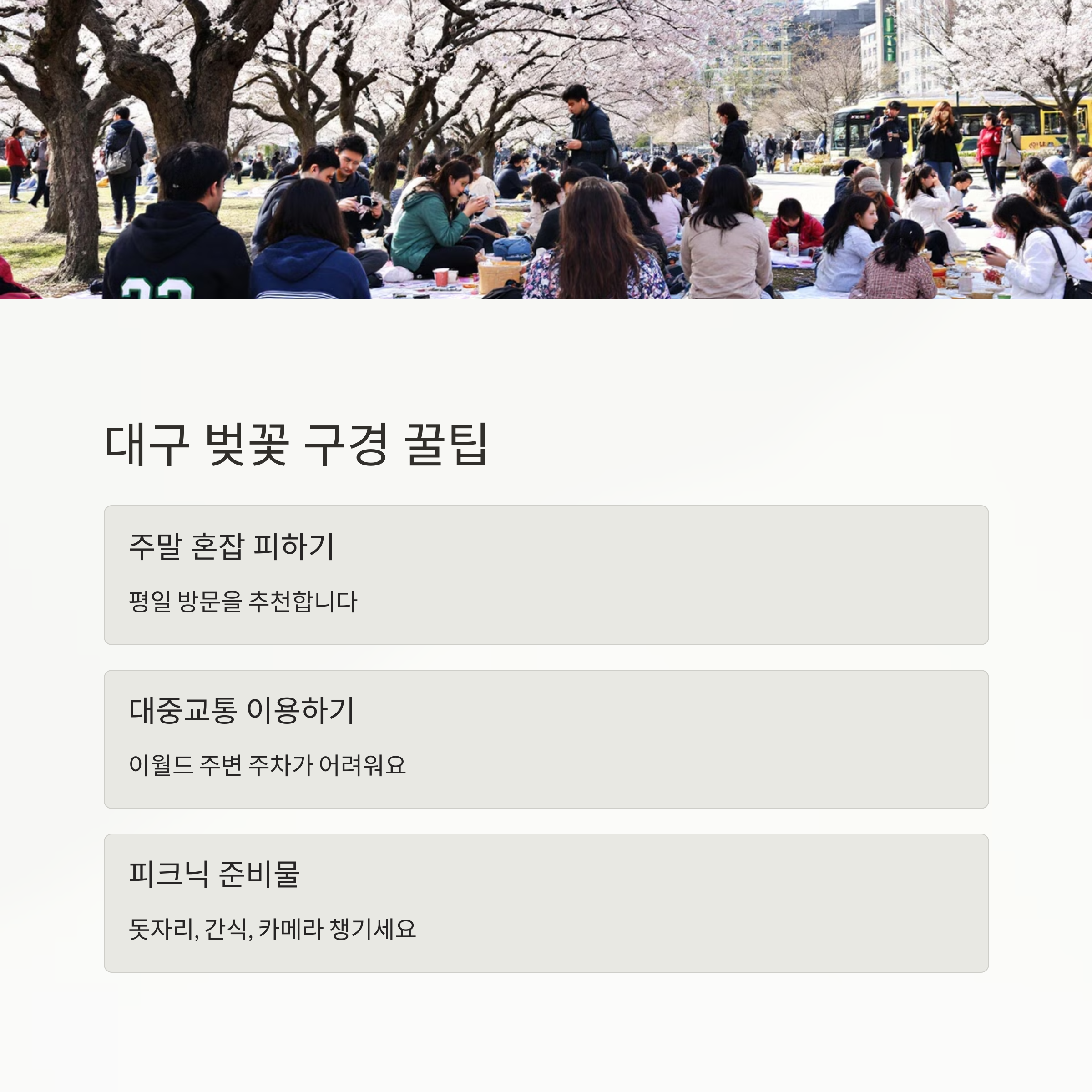 - 대구 벚꽃 구경 시 알아두면 좋은 팁