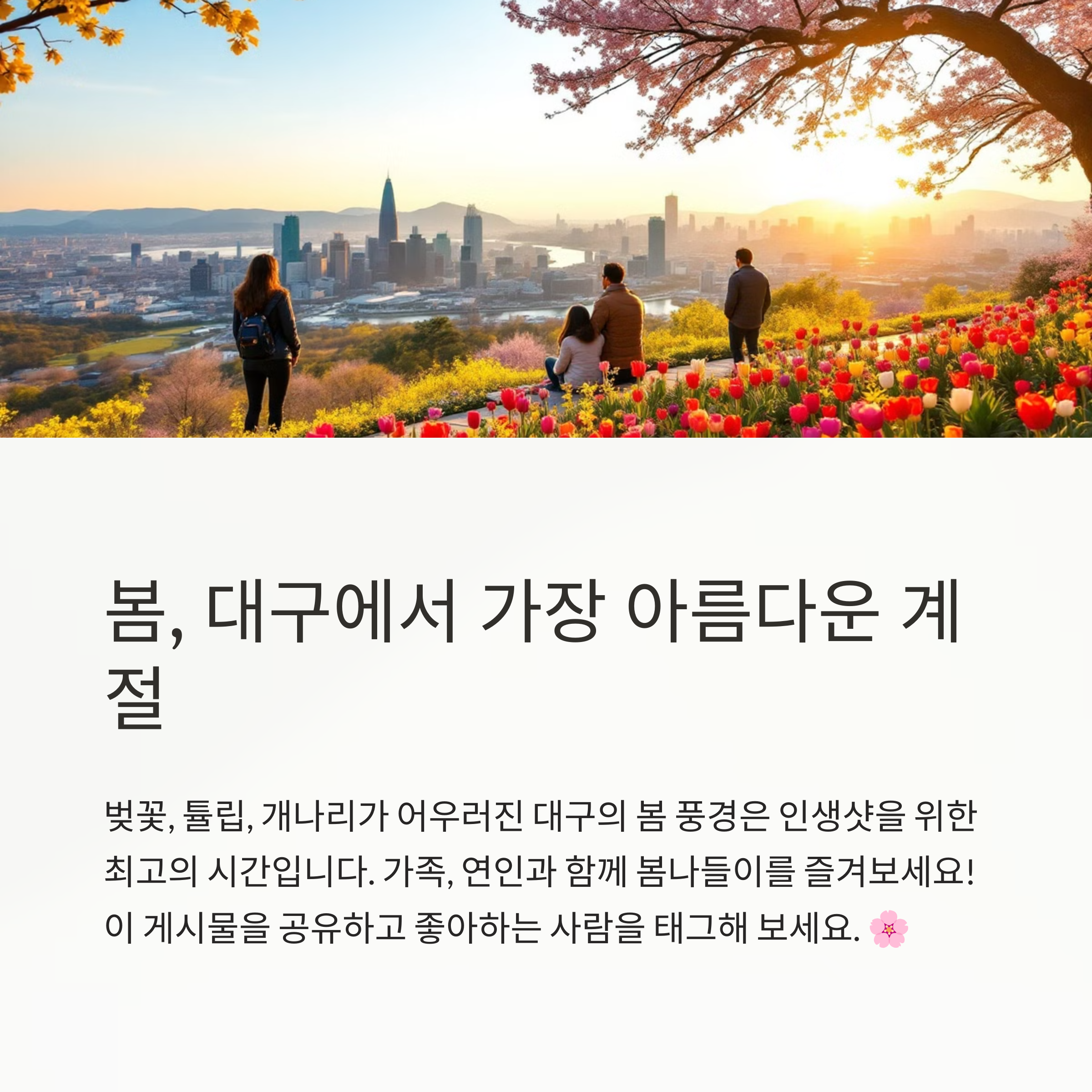 "벚꽃이 피는 시간은 짧지만, 그 추억은 오래 남는답니다. 대구의 봄, 놓치지 마세요!"