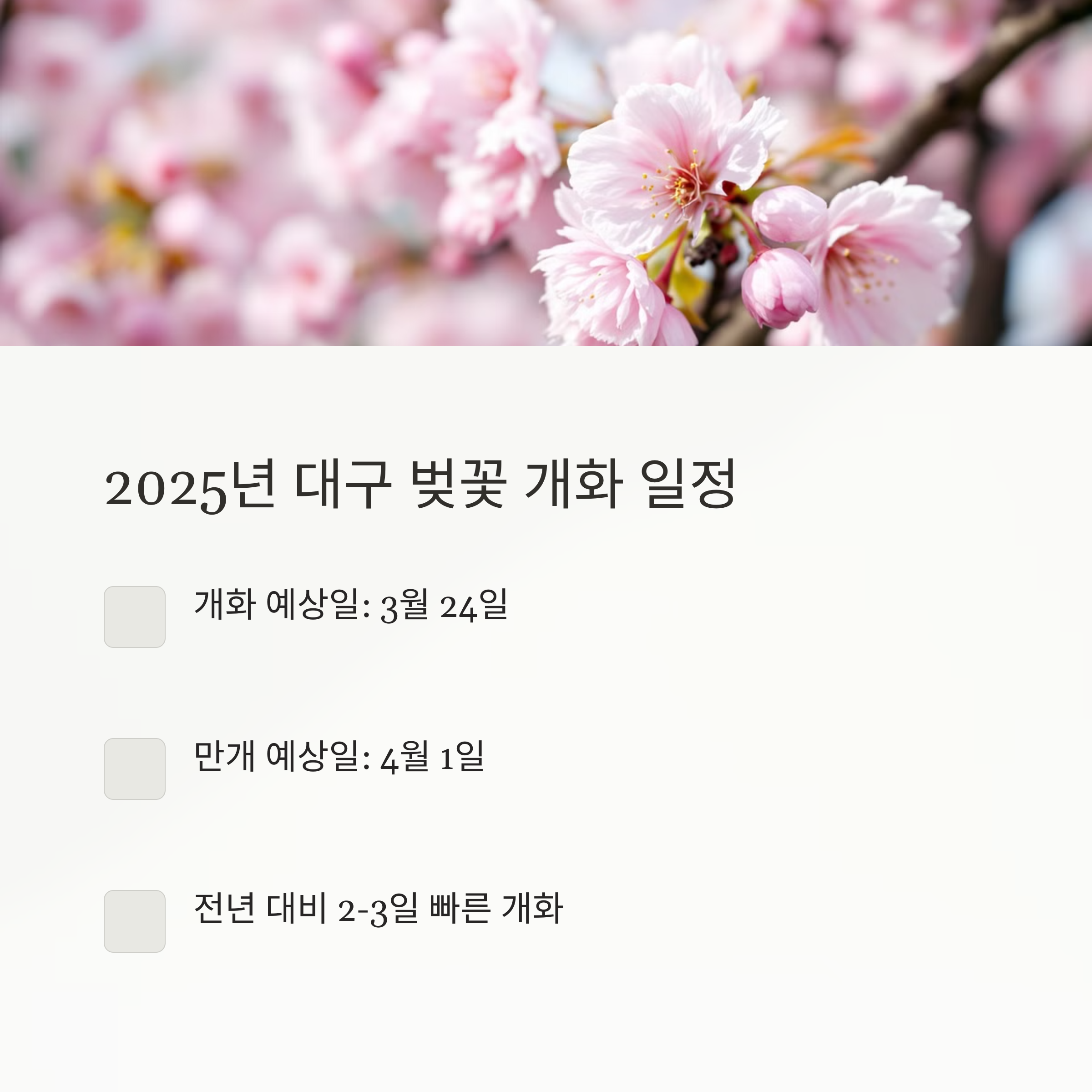 - 대구 벚꽃 개화 시기 및 만개 예상일