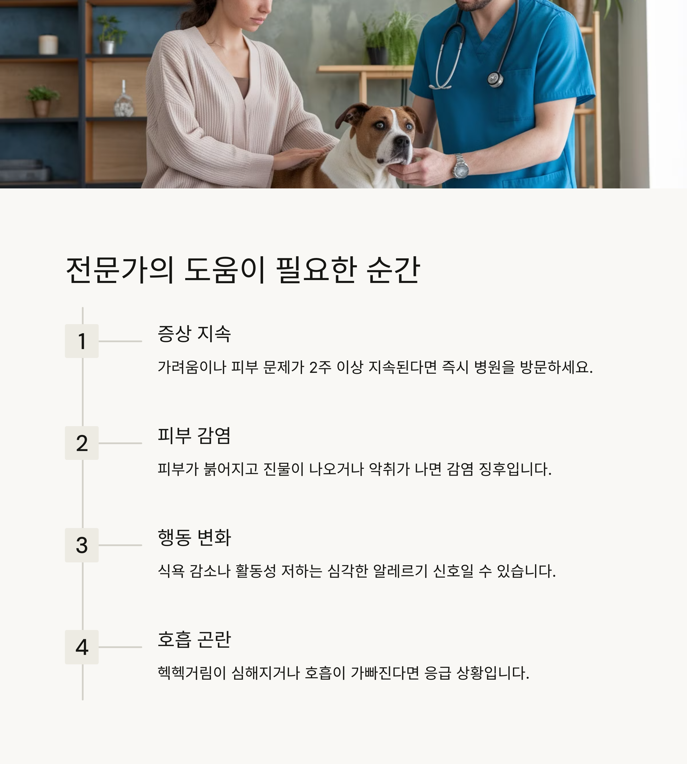 수의사는 알레르기 검사를 통해 정확한 원인을 찾아내고, 필요한 경우 항히스타민제나 스테로이드 치료를 처방할 수 있어요. 심한 경우에는 면역 요법을 고려할 수도 있답니다.