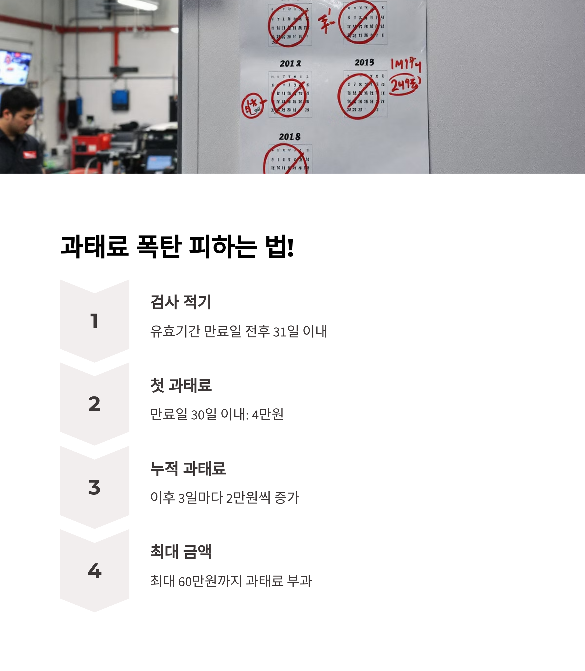 미리 준비하고 계획적으로 검사를 받아 과태료도 피하고, 안전한 드라이빙을 즐기세요! 🚗💨