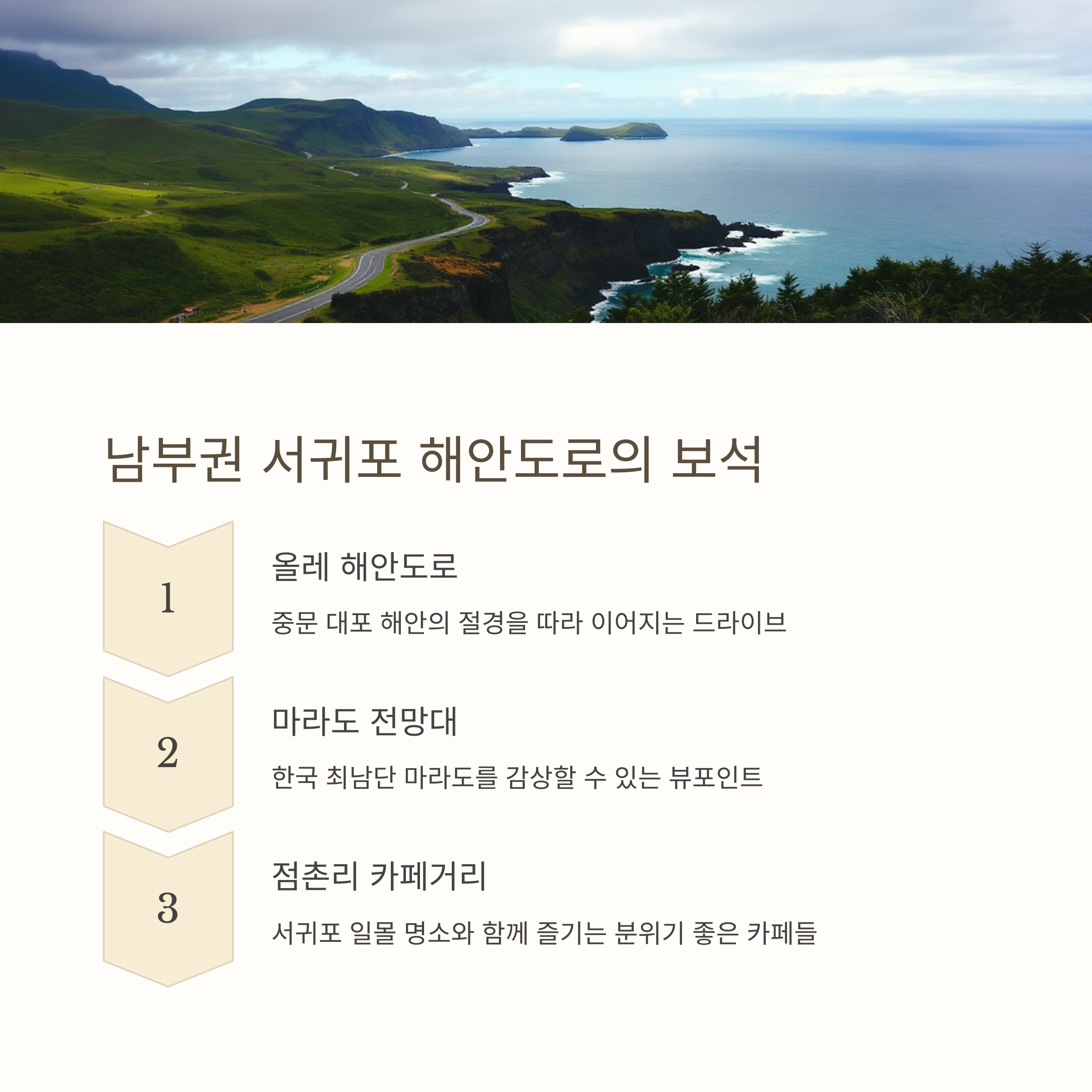 남부권 추천 코스: 서귀포 해안도로와 마라도 뷰포인트