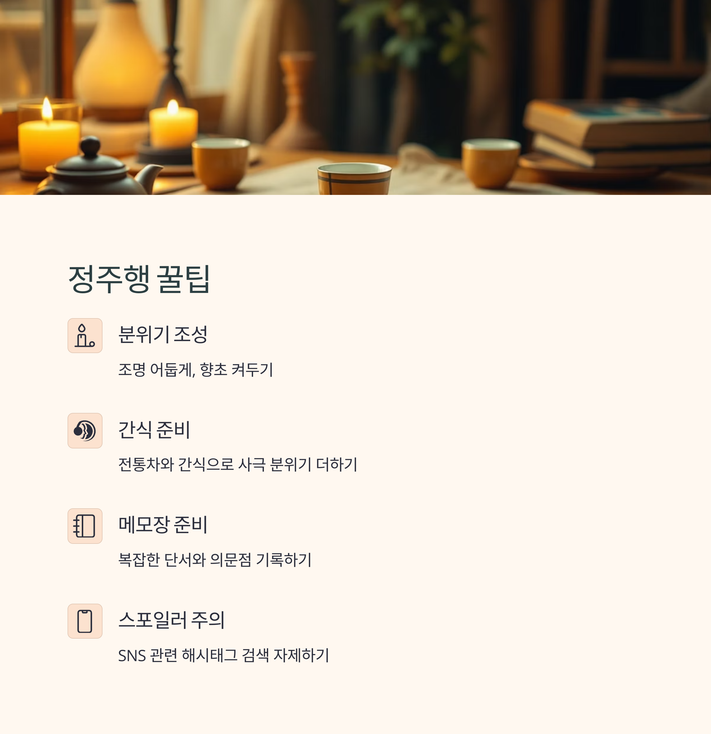 편안한 환경 조성하기: 저는 어제 첫 에피소드를 볼 때 조명을 어둡게 하고 향초를 켜두었어요. 사극의 분위기를 더 잘 느낄 수 있었답니다.