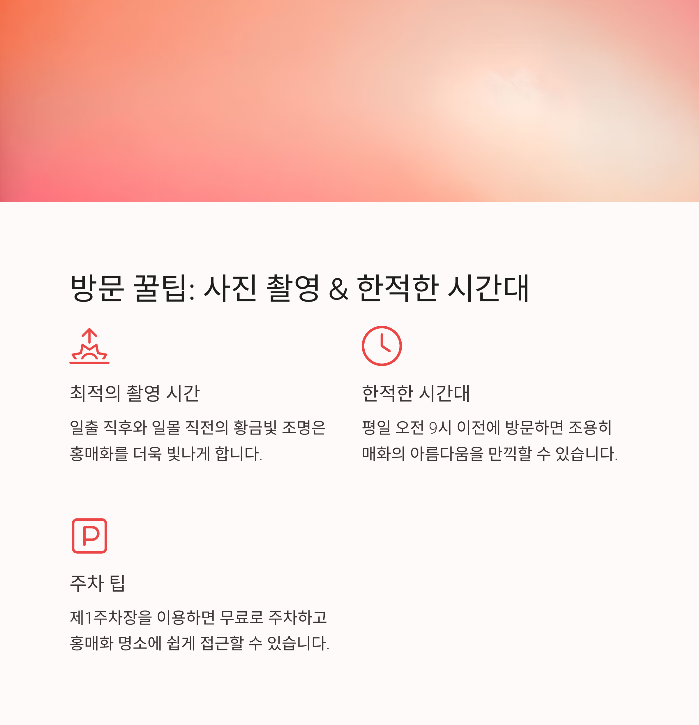 홍매화를 가장 아름답게 담고 싶다면 오전 10시에서 오후 2시 사이를 추천합니다.