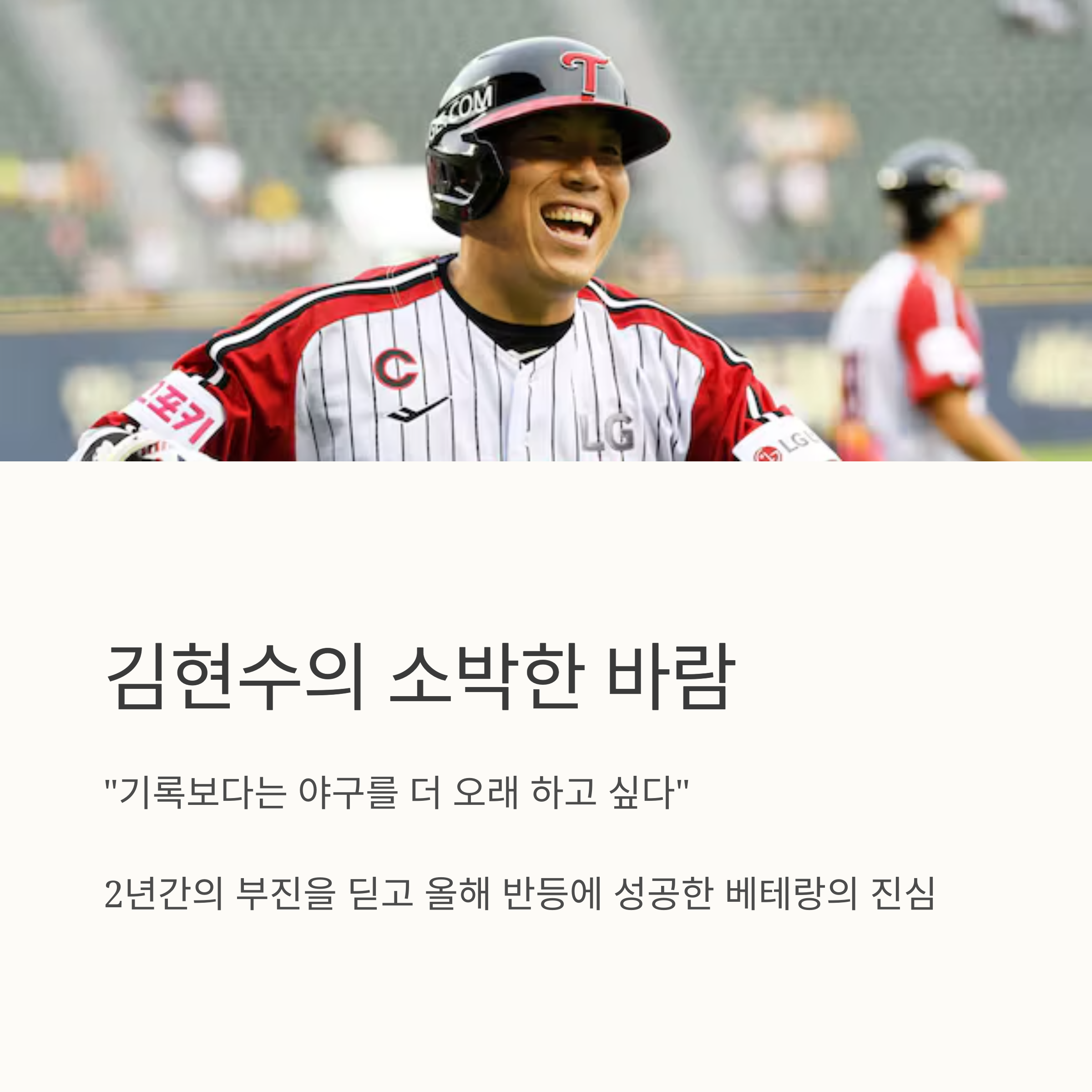 김현수는 “기록보다는 야구를 더 오래 하고 싶다”는 소박한 바람을 전하기도 했습니다. 그 말 속엔, 야구에 대한 애정과 프로로서의 책임감이 묻어납니다.